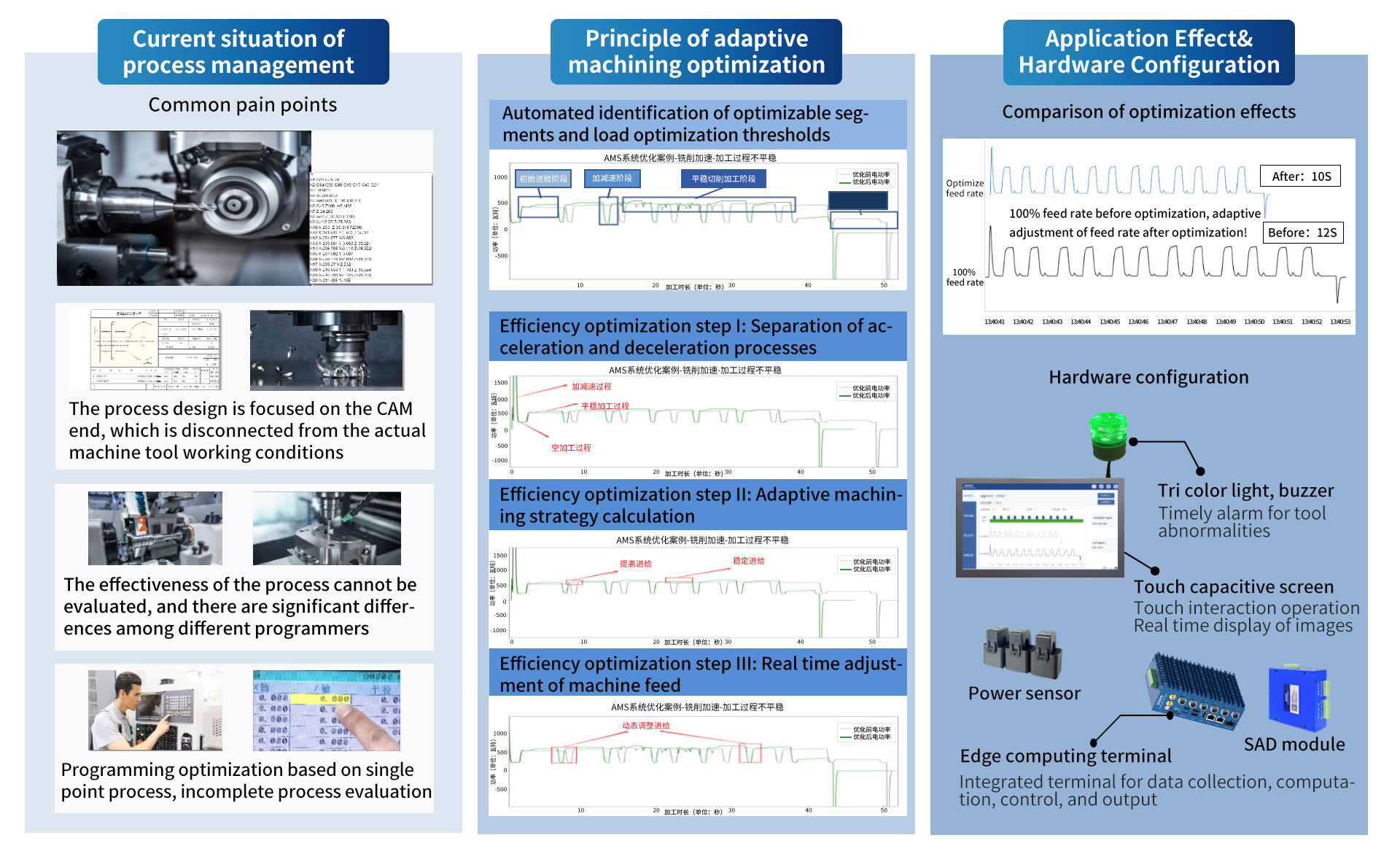 Combined with PMC program, the adaptive machining cycle is shortened by 8-15%