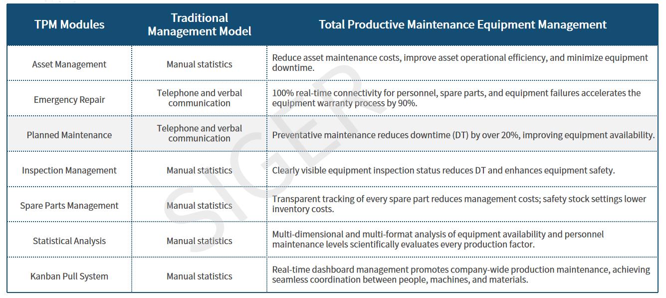 SIGER Total Productive Maintenance System - Planned Maintenance
